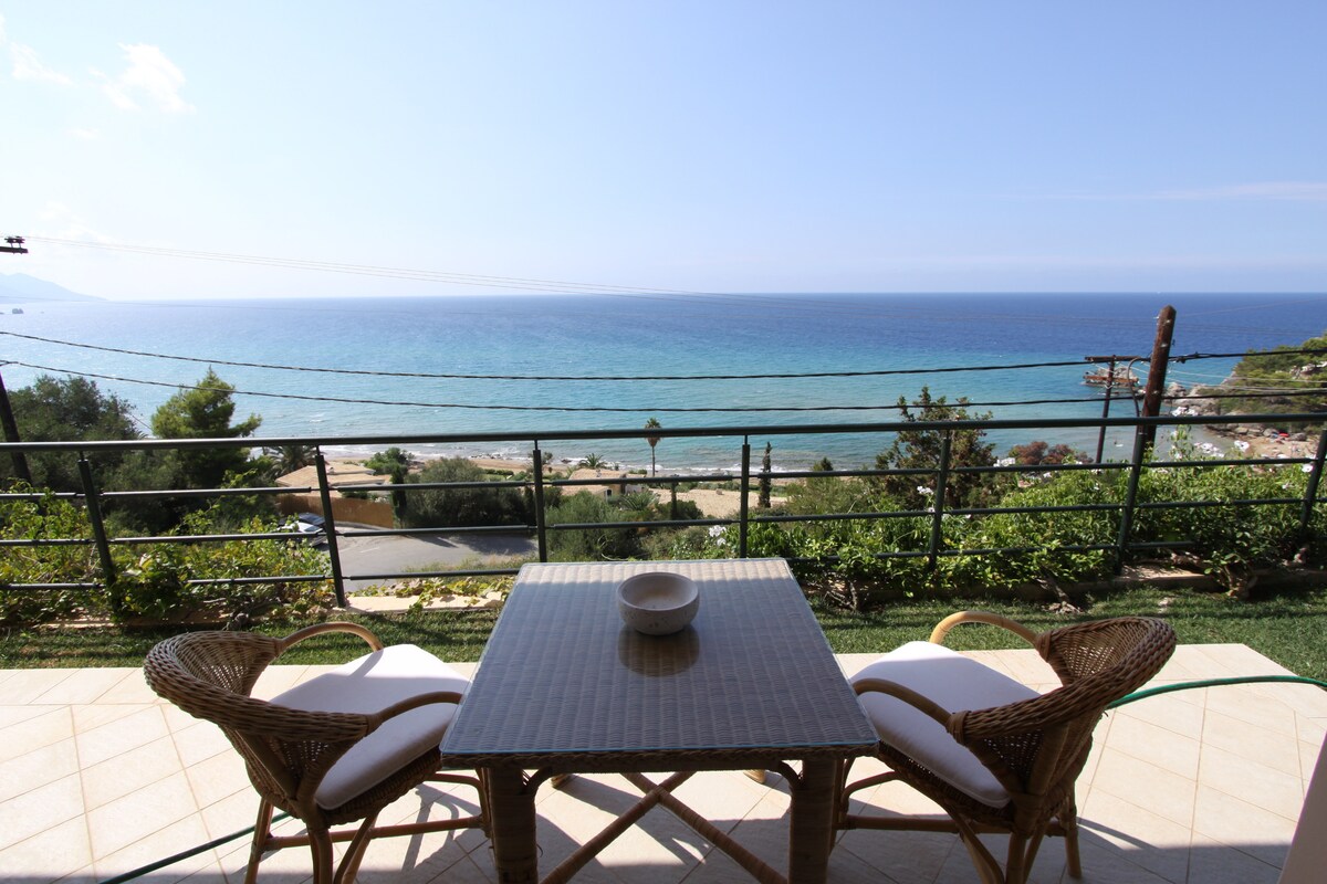 Prenovljeno stanovanje pred morjem, 20 m od kristalno čiste vode Glyfada. Soba z zakonsko posteljo, svetla dnevna soba s prostornim kavčem z zakonsko posteljo, popolnoma opremljena kuhinja in kopalnica s pralnim strojem, 55'' 4K Smart TV in jedilno mizo za štiri osebe. Sprednja terasa z mizo za šest oseb, dvema ležalnikoma in dvema sproščujočima foteljema z veliko zaščito pred dežnikom. Mirno dvorišče z mizo za štiri. Brezplačno zasebno parkirišče in internet.