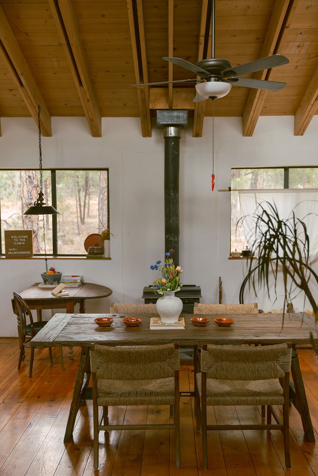 Sprostite se v tej elegantni koči v gozdu. Lokacija na vrhu hriba z razgledom za vedno. Tik ob slikoviti cesti 66 (Hwy 50), ki se vzpenja po strmem (a kratkem) dovozu, se nahaja 2-sobna brunarica z obilico petja ptic in borovcev, veranda, obdana s pogledom in opremljena z žarom za obedovanje na prostem. Pet milj vzhodno je vas Pecos z reko Pecos za ribolov, pohodništvo in raziskovanje. Šestnajst milj severno je legendarno mesto Santa Fe, polno vrhunske umetnosti in kulture