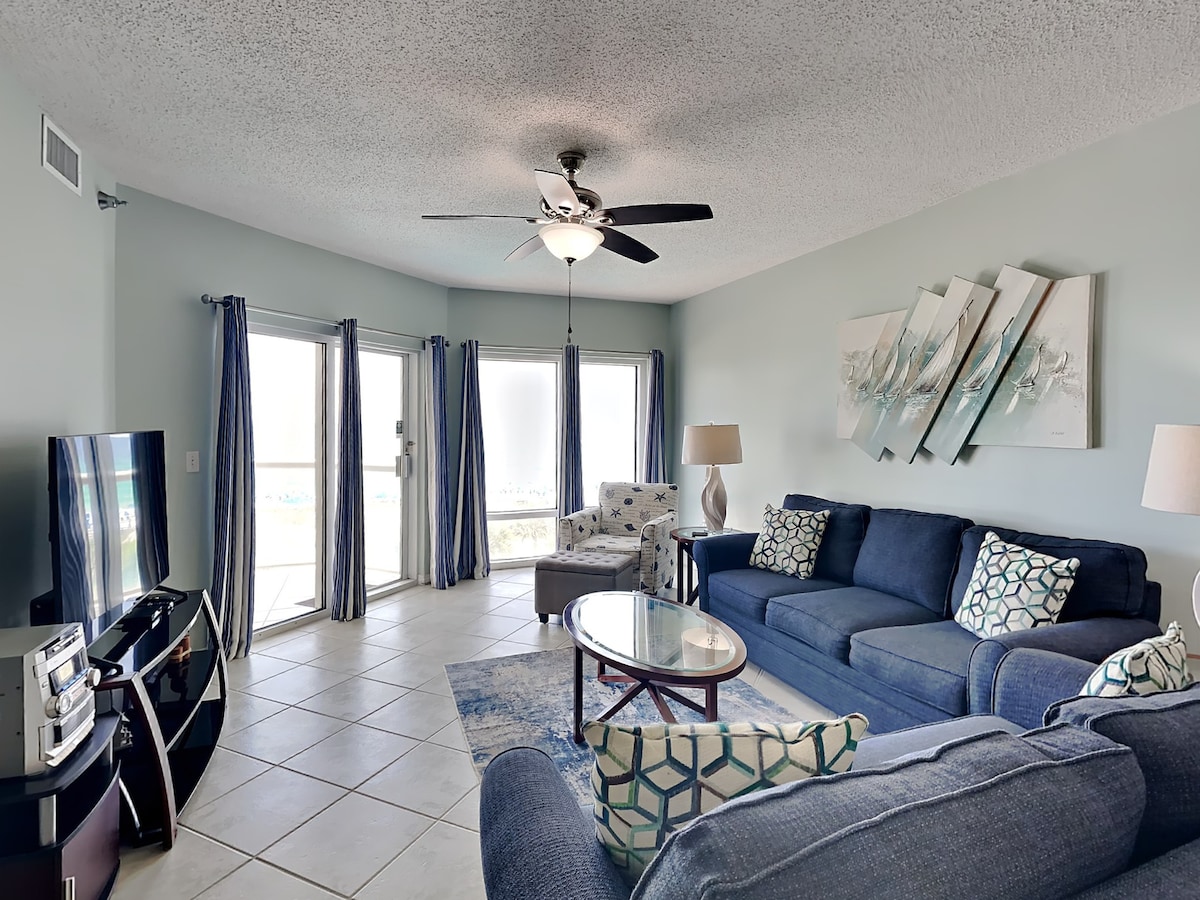 **Pred kratkim posodobljena notranjost!** Doživite osupljivi zaliv Amerike iz udobja tega stanovanja na plaži z dvema spalnicama z dvema zakonskima posteljama in dvema kopalnicama, ki se nahaja neposredno na plaži Pensacola, ki so jo bralci revije Condé Nast Traveler izbrali za najboljšo plažo v Ameriki. Ta stanovanje na plaži se ponaša z živahno notranjostjo, ki jo krasijo elementi s temo plaže, zasebnim balkonom s čudovitim pogledom na ocean in dostopom do dveh bazenov (od katerih je eden ogrevan) ter masažne kadi. Uživajte v najboljših restavracijah in nakupovanju na plaži, vse v kratkem sprehodu.