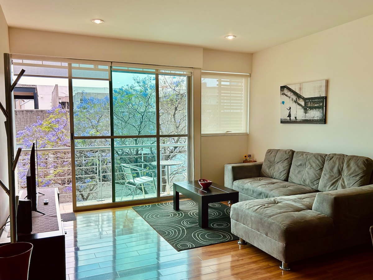 Sončno stanovanje z balkonom v soseski Nápoles, v bližini soseske Condesa-Roma
