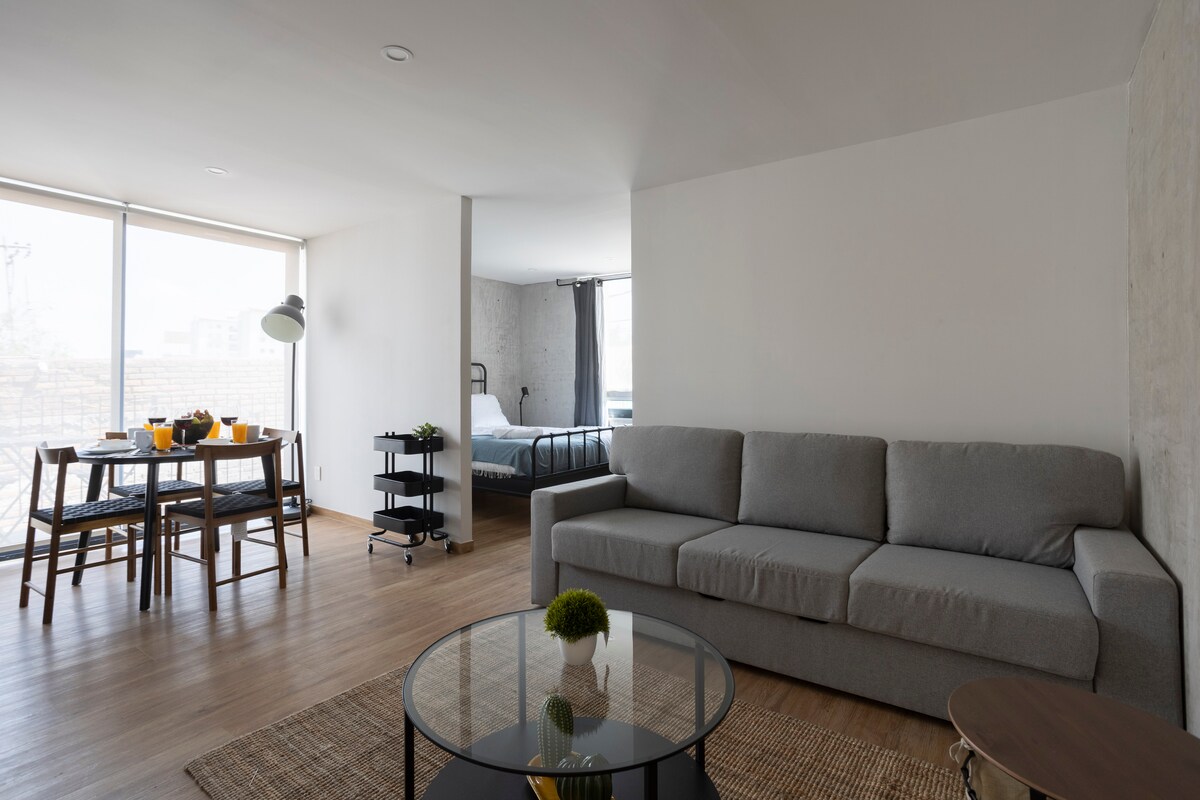 Majhna samostojna spalnica, popolnoma opremljena in funkcionalna, ima integrirano kopalnico, pametno televizijo, pametno televizijo, Wi-Fi, zakonsko posteljo, ogrevanje, mikrovalovno pečico, aparat za kavo in minibar.Nahaja se v koloniji Condesa v bližini Mehiškega parka, restavracij in turističnih krajev, kot je Chapultepec.Je neodvisen in nima kuhinje ali prostorov za skupno rabo, ampak vključuje samo spalnico.
