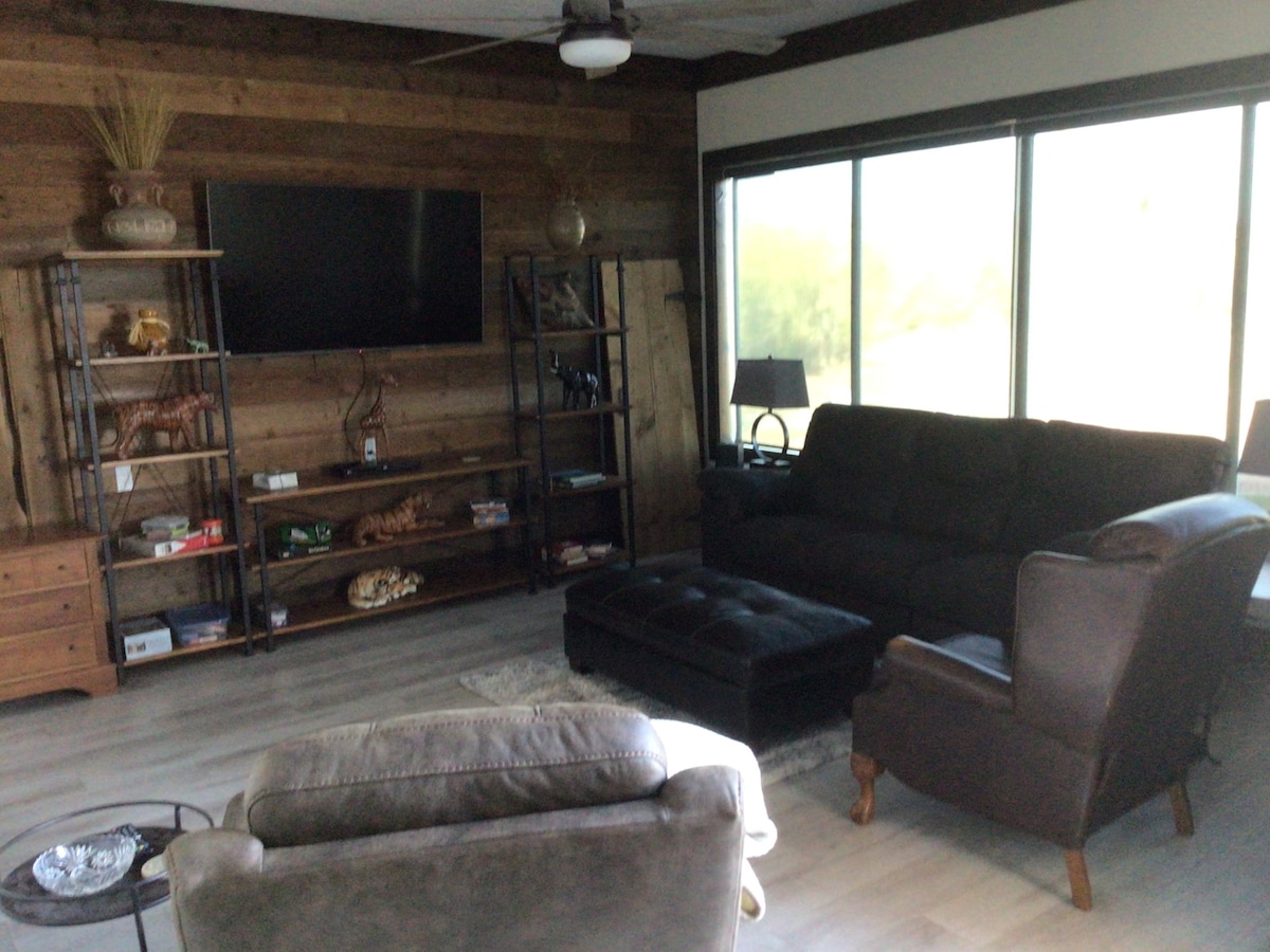 Ranchito Tranquilo se nahaja v senci čudovitih gorovja Superstition na 1,5 hektarja, manj kot 30 minut od dveh glavnih jezer, opazovanja ptic, pohodništva, jahanja, rečnih tubingov in terenske vožnje ob reki. To je popoln, povsem bazni tabor za vaše pustolovščine na prostem z dovolj parkirnega prostora za vse vaše igrače. Hitri Wi-Fi, 3 televizorji Roku in ledeno hladna klimatska naprava. Žar Blackstone, ognjišče, terasa. 30 min. do letališča. Imamo veliko gostov, ki se vrnejo vsako leto, zato vedno rezervirajte zgodaj.