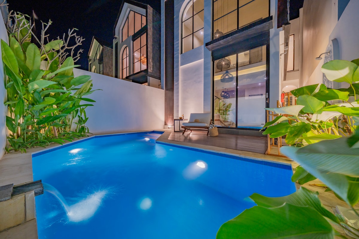 Vila s 3 zasebnimi sobami - kot nalašč za družine ali skupine, ki cenijo oblikovanje in zasebnost. Vila, ki jo navdihuje vrstna hiša v New Yorku, združuje osupljivo arhitekturo steklenih blokov z zračno notranjostjo in obilico naravne svetlobe. Sprostite se v zasebnem bazenu z masažno kadjo, uživajte na soncu na terasi s pogledom na plažo in infra savno ali pa uživajte v prijetnih filmskih večerih. Z živahno sosesko tik pred vašimi vrati in vsem, kar potrebujete v notranjosti, je ta vila idealno okolje za resnično nepozabno bivanje