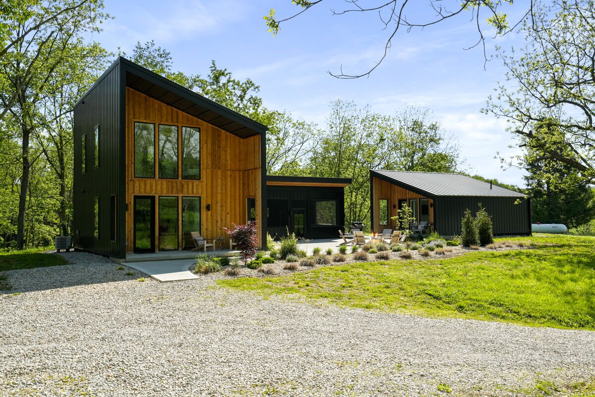 Zakaj boste skrili pobeg❤️: ・Razkošno, zasebno in sodobno prenočišče v gozdu ・Masažna kad na samem s slikovitim razgledom ・Ognjišče pod zvezdami ・Vrhunska kuhinja z elegantnimi oblogami ・Zakonska postelja s panoramskimi okni ・Hitri Wi-Fi in pametni televizor z aplikacijami za pretočno predvajanje ・Kopalnica z dvojnim umivalnikom, podobna zdravilišču ・Mirna, gozdnata lokacija v Hocking Hillsu ・Idealno za pare ali samostojne popotnike Kliknite »❤️Shrani«, da nas zlahka poiščete znova. Za vse sproščujoče podrobnosti preberite celoten vnos.