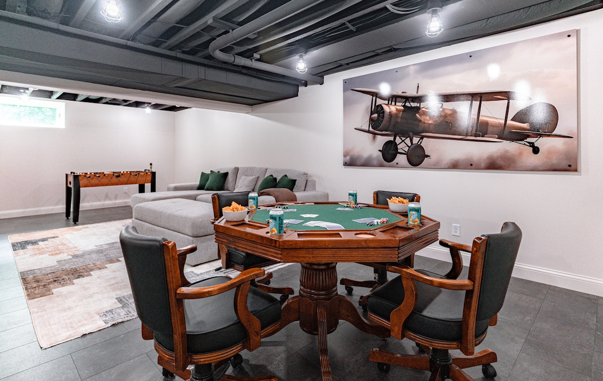 🌿🏡 Dobrodošli v Stoneveil Retreat, vašem podeželskem zatočišču v osupljivih gričih Hocking Hills. To prenočišče s 6 spalnicami in 4 kopalnicami združuje udobje in pustolovsko vzdušje. ✨🙌 Postrezite si na igrišču za pickleball, vadite zamah na zelenici🏌️♂️ ali pa se popolnoma sprostite s hladnim potopom, preden se ogrejete v savni ❄️🧖♀️. Veslajte po jezeru 🚣♂️, se družite ob ognjišču 🔥 ali pa se pomerite v igralnici 🎮🎱.