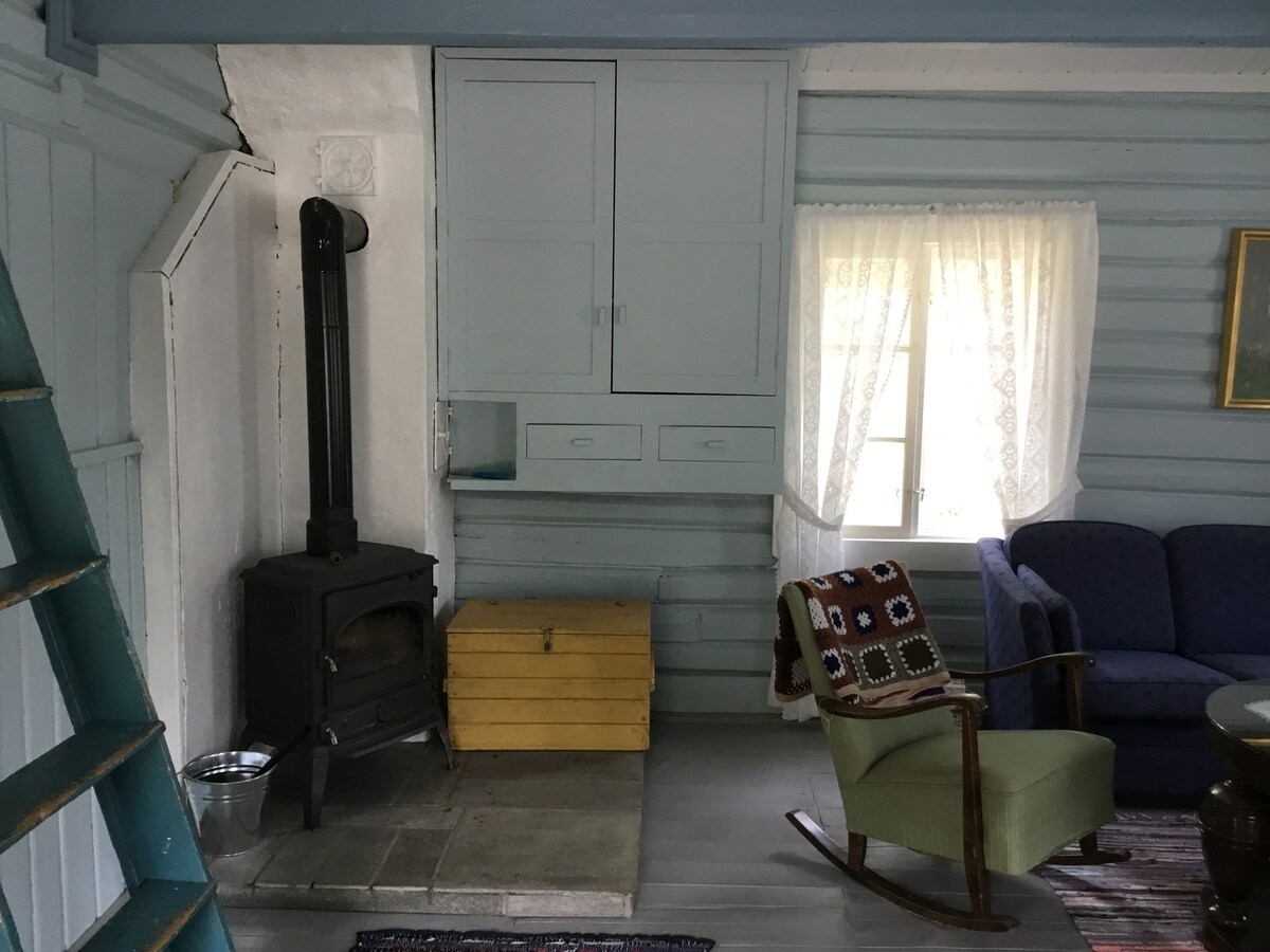 Koselig Hallingstue på lite småbruk ved riksvei 7
