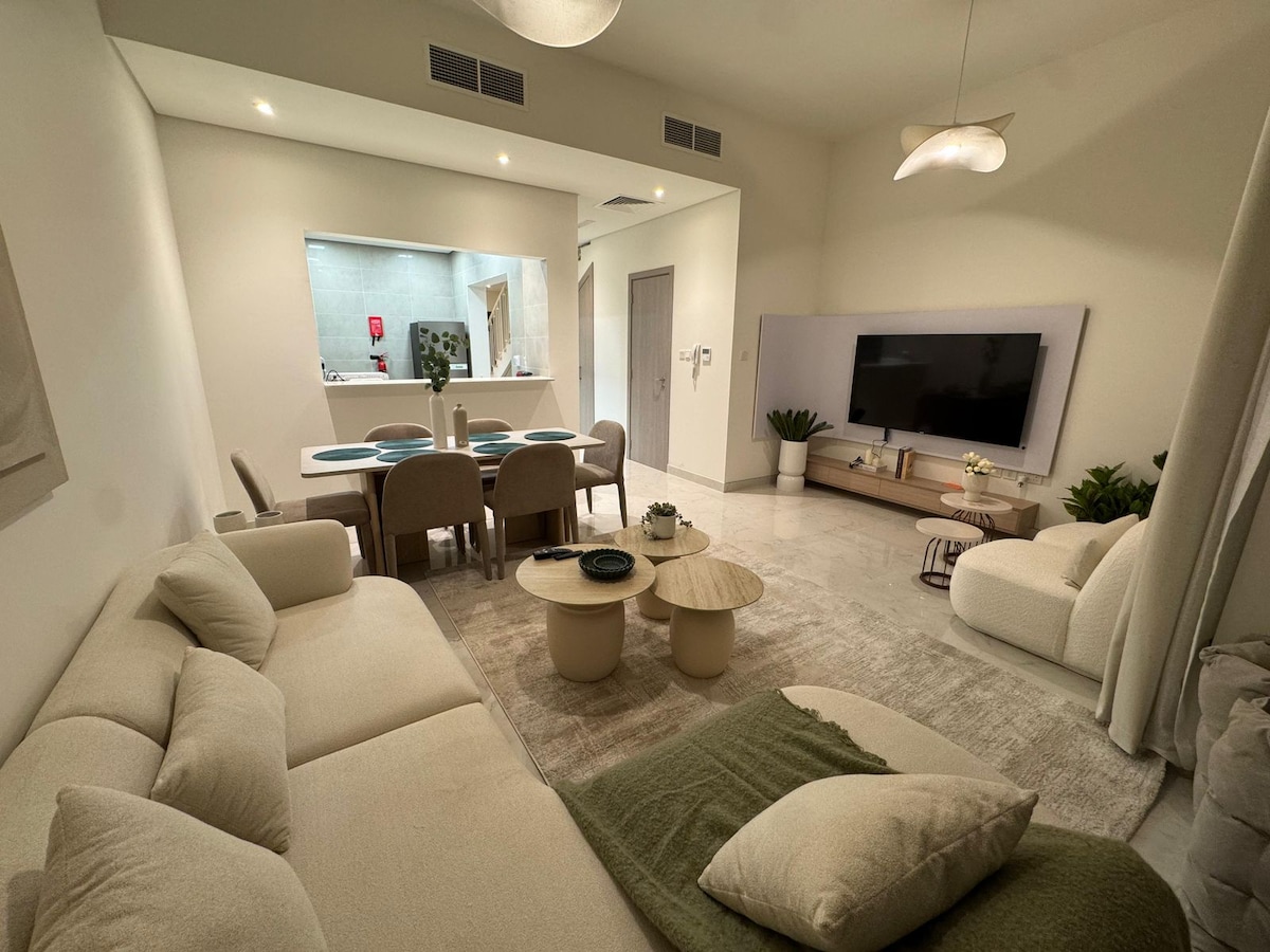 Experience elevated living in this stunning four-bedroom townhouse with an assistant room featuring a single bed, nestled in the vibrant heart of Dubai South. This two-story masterpiece blends modern elegance and comfort, offering a stylish living area with a smart TV and plush sofa set—ideal for unwinding after a busy day. Don't miss the opportunity to indulge in this luxurious townhouse at Parkside 2, Dubai South. Book your dream stay today!