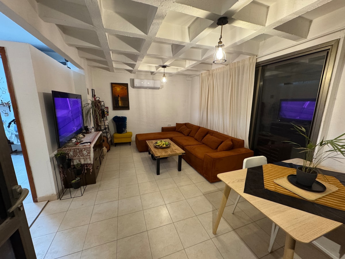 Mirno in udobno dvosobno stanovanje z majhnim dvoriščem in zasebnim parkiriščem (zaklenjeno z električnimi vrati) Stanovanje je v celoti opremljeno z novo udobno zakonsko posteljo + 2 kavča, ki jih je mogoče odpreti na 1 zakonsko posteljoin2 enojni postelji! Ethernet + povezava Wi-Fi, pametna televizija, aplikacija za kanale (NextTV) in Netflix. 5 minut hoje od lokalnega supermarketa. Avtobusna postaja 30 metrov stran do železniške postaje Herzliya\ center mesta\IDC Private College.