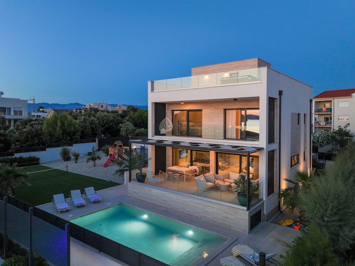 Vila Zadar Superior je popoln kraj v Zadru z najlepšim sončnim zahodom. Obkrožite se s slogom v tem novem stanovanju, zelo dobro opremljeno, okna od tal do stropa s čudovitim pogledom na morje in z lastnim strešnim krovom z ekskluzivnim zasebnim dostopom. Pred hišo lahko uživate v skupnem bazenu in bivalnih prostorih. Zelo lepa prodnata plaža je v bližini hiše (150 m).