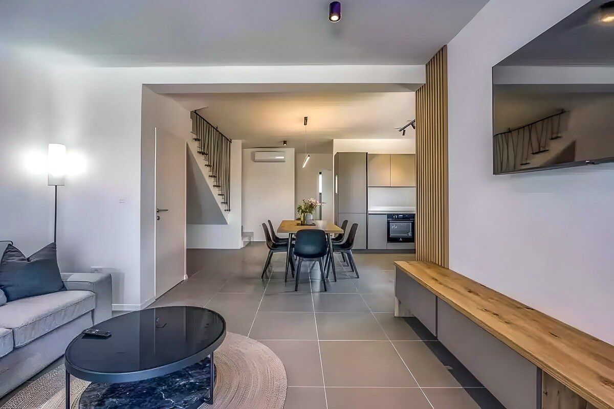 To edinstveno podstrešno stanovanje je sodobno urejeno v novogradnji. To elegantno 120 kvadratnih metrov veliko stanovanje s teraso je utelešenje sodobnega bivanja z vrhunskimi objekti za vaše udobje in užitek. Ne glede na to, ali ste tukaj zaradi družinskih počitnic, romantičnega oddiha ali poslovnega potovanja, vam naše razkošno podstrešno stanovanje ponuja vse, kar potrebujete.