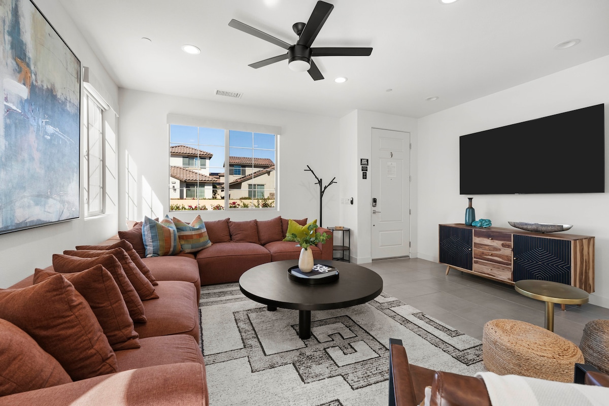 Dobrodošli v svojem puščavskem zatočišču v La Quinti – sproščujočem prostoru, zasnovanem za udobje, povezovanje in skupno preživljanje časa: - za 8 oseb | 3 spalnice | 4 postelje | 2,5 kopalnice – Bazen, zasebna masažna kad in kurišče – Dvorišče z žarom, zunanjo jedilnico in ležalniki – Miza za namizni tenis, TV in Wi-Fi – Kuhinja, pralni stroj in brezplačni sušilni stroj – v enoti, polnilnik za električna vozila – Primerno za hišne ljubljenčke (določeni hipoalergeni psi za simbolično doplačilo)