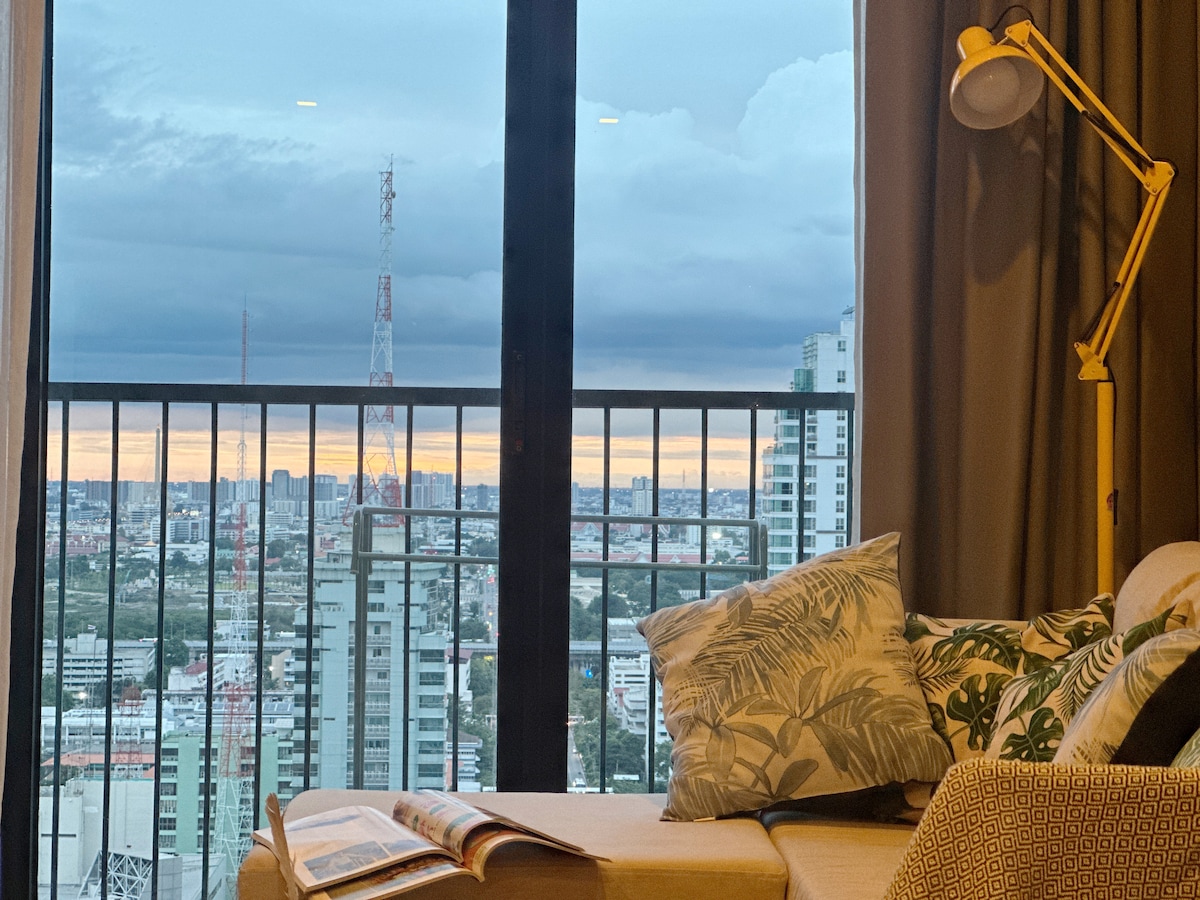 巿中心一室B1D/近地铁/高层城巿景观/暹罗商圈/免费送站/室外泳池/健身/高空酒吧/四晚送接机