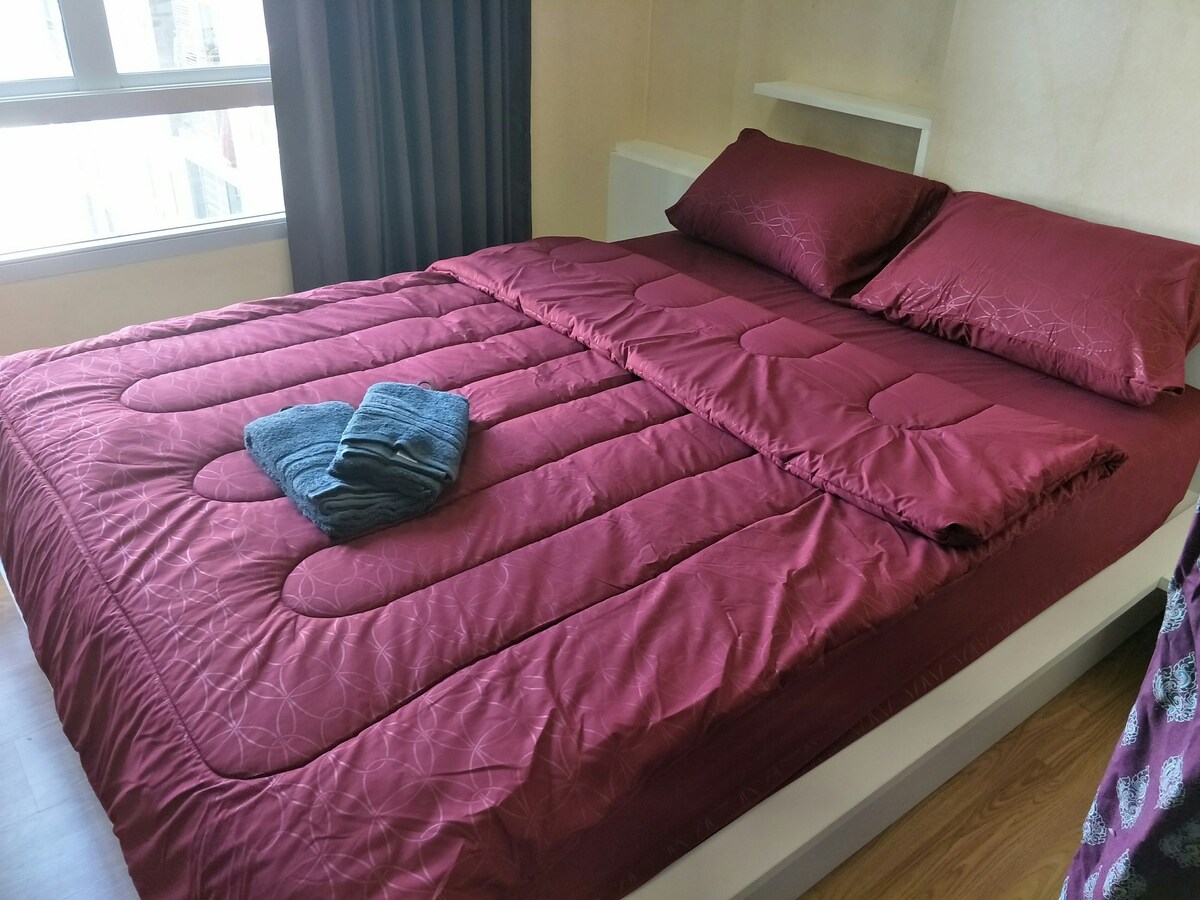 Soba v 9. nadstropju s pogledom na bazen s pogledom na bujni zeleni gozd mangrov. Čudovito urejeno, v celoti opremljeno in popolnoma opremljeno. Objekti v 5. in 31. nadstropju ~ Velik bazen ~ Fitnes, polna igra ~ Boks ~ Plezalna cona ~ Ločena savna za moške in ženske ~ Dnevni vrt ~ Dostop do kartice s ključem je razdeljen na raven ~Dvigalo ~ Varnostnik ~ CCTV CCTV
