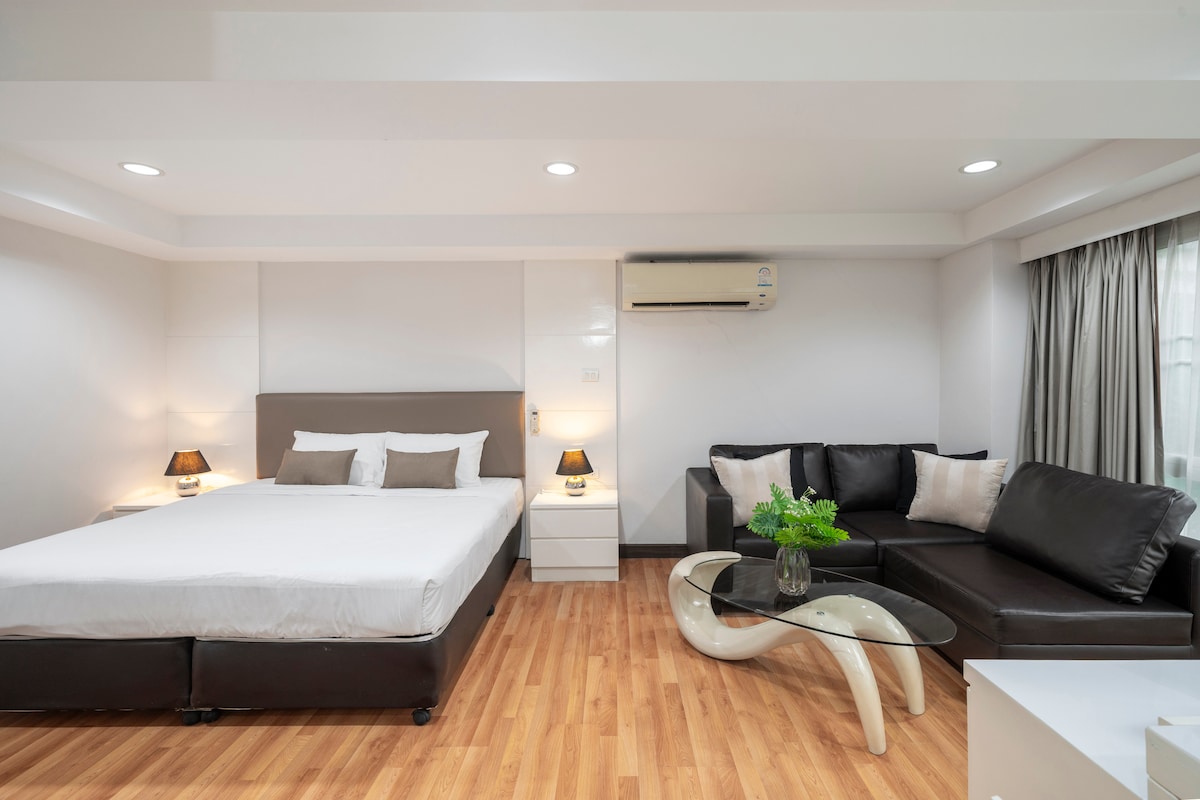 Prostorno celotno stanovanje z zasebno kopalnico, kuhinjsko nišo, bivalnim prostorom/jedilnico, 1 spalnico z določenim delovnim prostorom, balkonom in dnevno posteljo. Uživajte v širokih oknih za nemotene razglede in veliko sončne svetlobe, kar povečuje zračnost za bolj sproščujoče bivanje. Uživajte v vseh ugodnostih mestnega življenja, vključno z: - 5 min do BTS Asok, MRT Sukhumvit - 5 min do terminala 21, Emporium/Emquartier in parka Benjasiri - 1 min do 7-11 priročna trgovina - Veliko ulične hrane, kavarne in taksijev/koles