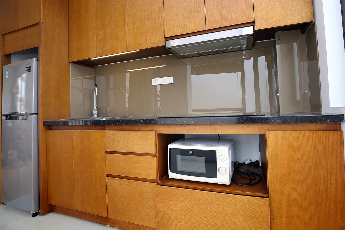 Sprostite se v mirnem stanovanju z osupljivim razgledom na Zahodno jezero na mirnem polotoku Yen Phu. Prostorna dnevna soba ima velik in udoben kavč za sproščanje ali spanje. Funkcionalna kuhinjska niša s pralnim/sušilnim strojem zagotavlja priročnost. Spalnica vključuje klimatsko napravo, TV z ravnim zaslonom in delovni prostor, ki je idealen za delo ali sprostitev. Nahaja se na območju z nizkim prometom in ponuja miren pobeg od mestnega vrveža. Stanovanje popolnoma združuje lepoto jezera z bližino dinamičnih ulic Hanoja.
