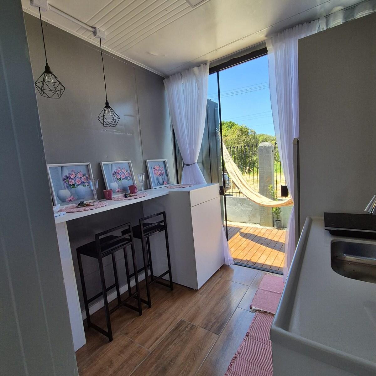 Hospede se em um container que viajou o mundo encima de gigantescos navios por aguas marítimas. Hoje espera você para curtir as lindas praias de Penha-SC e para ter uma experiência incrível em uma casa de lata. Pequeno por fora, mas muito aconchegante por dentro! Direito a uma vaga de estacionamento por casa container. Este lugar extraordinário ficará gravado na sua memória. curte aí @aluguel_temporada_penha_sc