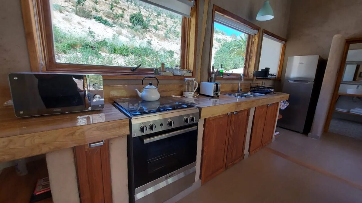 En el corazón del Valle del Elqui, nuestra cabaña es un refugio cálido y aventurero, rodeado de montañas, viñedos y cielos infinitos. Es el punto ideal para explorar rutas de trekking, cabalgatas, ciclismo y vivir noches de astroturismo únicas. Disfruta de ambientes acogedores, terraza con vistas épicas y parrilla a orillas del estero. Perfecta para familias o grupos que buscan desconexión activa y momentos inolvidables bajo las estrellas.