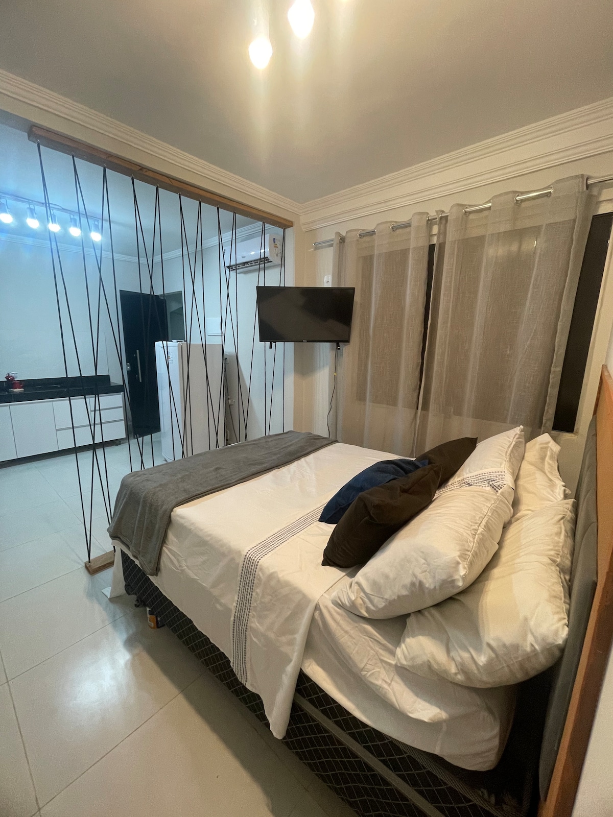 Descubra o seu refúgio perfeito em nosso incrível loft! Este espaço moderno e aconchegante é perfeito para casais, viajantes solo ou até 03 amigos. - Espaço Aconchegante: Loft completo. O que está incluído: - Cozinha Completa: Equipado com utensílios, fogão e geladeira para preparar suas refeições. - Wi-Fi Grátis. _ TV SMART COM APLICATIVOS. - Ar-Condicionado. - Roupa de cama e toalhas. - Estacionamento disponível grátis. - 1 Cama de casal - 1 Colchão solteiro avulso