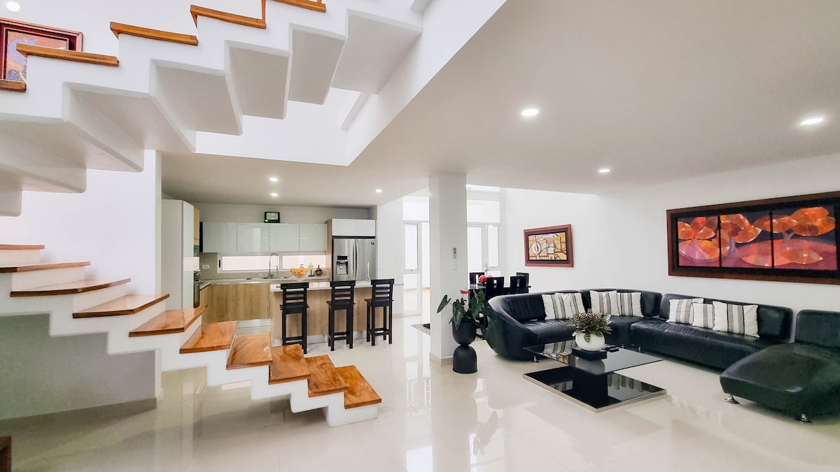 En la mejor zona de la ciudad este apartamento a estrenar garantiza las mejores vacaciones familiares o reuniones de trabajo. 2 habitaciones cuidadosamente equipadas, con aire acondicionado y Smart TV. La sala cuenta con balcón y desde tu escritorio podras ver la Sierra Nevada con WiFi de alta velocidad. La cocina brinda todo lo necesario para sentirte un chef. El edificio tiene planta eléctrica y tanque de agua. Vigilancia privada 24/7 para tu seguridad, 2 puestos de estacionamiento techado.