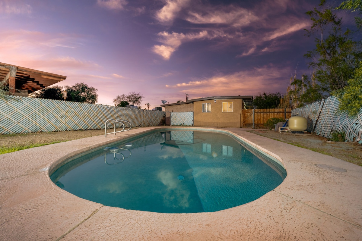 Skriti dragulj v Tucsonu! Hiša je klasično prenočišče v slogu opeke. Uživajte v vsem udobju doma, sprostite se na čudovitem, odmaknjenem, popolnoma ograjenem dvorišču z zasebno masažno kadjo in bazenom. Jedilnica lahko sprejme do 8 oseb, kuhinja pa je v celoti opremljena z vsemi osnovnimi potrebščinami. Na voljo je majhen in funkcionalen pisarniški prostor s tiskalnikom in papirjem ter pralnica. Na voljo so 3 udobne spalnice s pametnimi televizorji, hitrim internetom, visokokakovostno posteljnino in stropnimi ventilatorji.