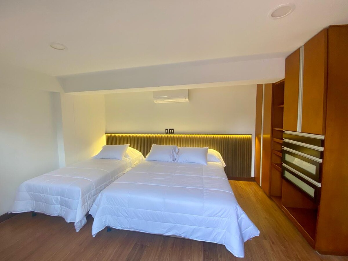 SERENE RINCÓN, Sprostite se v tej mirni in elegantni suiti. Vsaka podrobnost je zasnovana tako, da zagotavlja mir in harmonijo tako, da zagotavlja miren, zaseben in udoben oddih. To edinstveno prenočišče v Bucaramangi ima dovolj prostora, v katerem lahko uživate s svojim.