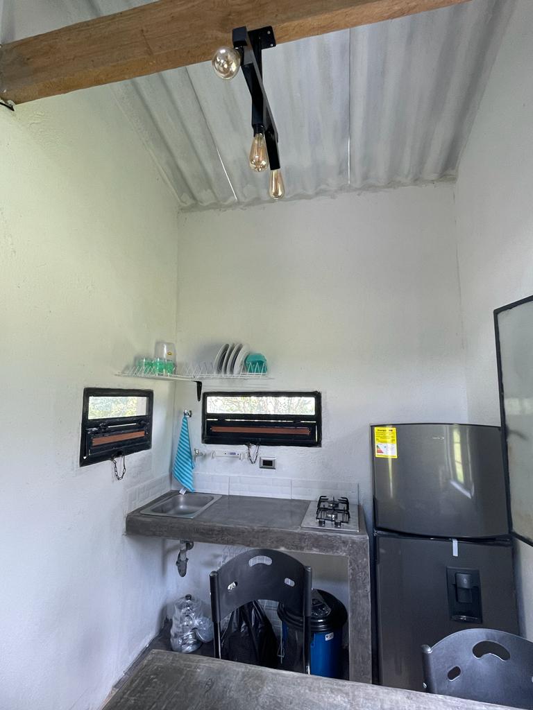 Es una cabaña totalmente dotada, fresca, con un patio jardín amplio al frente y una hermosa vista a los cerros orientales de la vía a Cúcuta. Las zonas comunes son compartidas con los huéspedes de las otras cabañas (tenemos 4 cabañas más) Los eventos no están incluidos ni el salón ni estadero.