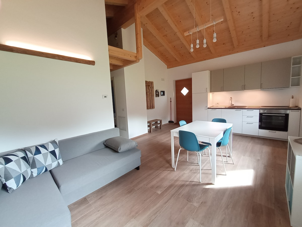 Udobna hiška na deželi, obdana z zelenjem. Odlična lokacija. Nahaja se 700 m od Bezzecca. V bližini kolesarske poti do jezera Ledro. Ograjena veranda z zelenimi površinami za svoje udobje in varnost vašega psa. Velika, sončna trata. V drugem nadstropju: opremljena kuhinja (hladilnik, pomivalni stroj, mikrovalovna pečica), dnevni prostor (TV) in kopalnica. Zgornje nadstropje: odprt prostor, ki se uporablja kot spalni prostor, z majhnim pisarniškim kotičkom in omrežjem Wi-Fi. Ogrevanje. Shramba za kolesa in zasebno parkirišče.