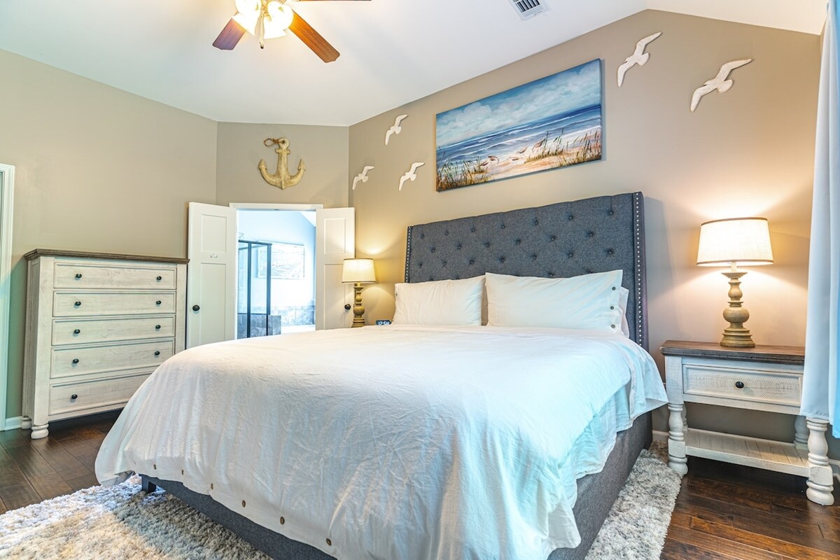Discover a relaxing escape in this comfortable home set in a quiet, family-friendly neighborhood. Thoughtfully designed with modern finishes and new appliances, the space features cozy king-size beds, fast Wi-Fi, and Smart TVs—ideal for work or downtime. Enjoy outdoor living on the spacious back patio, stroll along the nearby lake, or let little ones play at the playground just steps away. Perfect for short or long stays—book today and settle into comfort, style, and total relaxation today now!