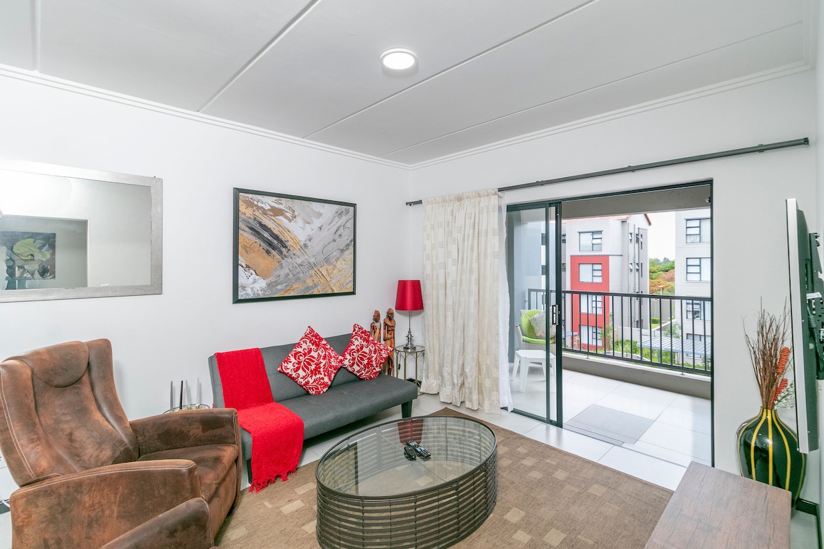 Doživite razkošno bivanje v tem stanovanju Fourways, ki je kot nalašč za pare ali poslovne potnike. Uživajte v udobju bivanja v središču mesta Fourways. Umaknite se v osupljivo stanovanje z 1 zakonsko posteljo, popolnoma opremljeno kuhinjo in sodobno kopalnico. Sprostite se na terasi ali na kavču in uživajte v televizorju z Netflixom in Youtubeom. Stanovanje ima rezervno električno energijo, ki poganja televizor in Wi-Fi. Rezervirajte svoje bivanje še danes in se prepustite udobju in razkošju.