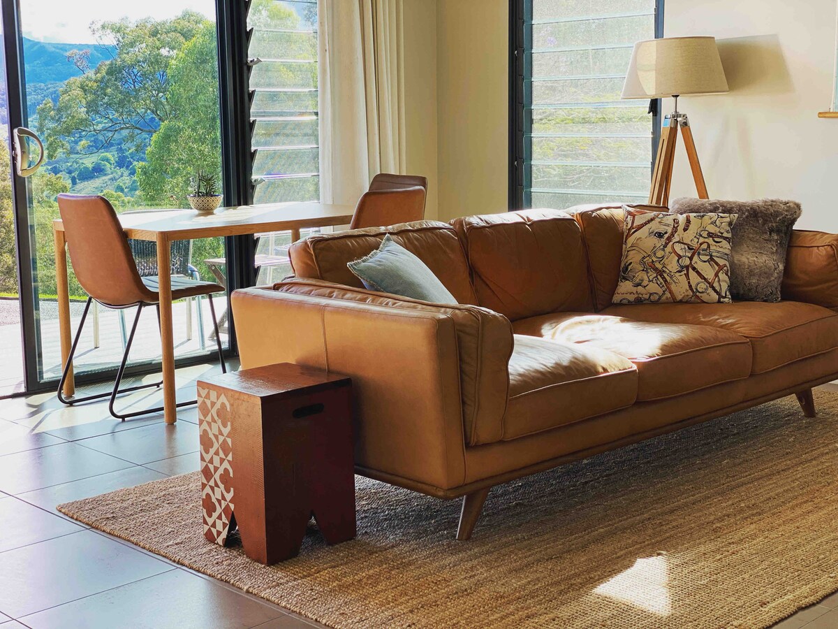 Zasebna sodobna koča, ki se nahaja med drevesi in osupljivim razgledom na Gold Coast. Potreba za pobeg, potem je ta zasebna samostojna loža za vas, da se sprostite v miru, si vzemite čas in si vzemite čas, da uživate v čudovitem razgledu od Stradbroke do Surfers Paradise. Sprostite se ob kaminu, sprostite se na terasi, naredite jogo in uživajte v prostoživečih živalih. Morda boste celo videli kenguruja, koalo ali Kookaburre. Uživajte v hladnejšem podnebju kot v okolici. Zbudite se ob čudovitem cvrkanju ptic in miru.