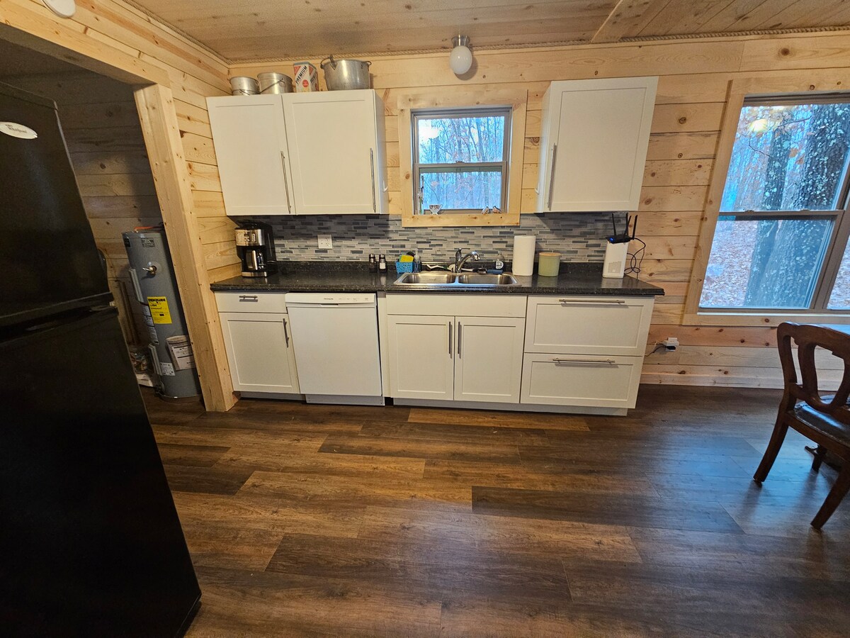 This beautiful, 2 bedroom, freshly renovated rock cabin is the perfect escape for anyone looking for a unique place to stay. With whitewashed wood accents, exposed vaulted beams & chic cabin décor this rental is full of charm. It also comes equipped with all the amenities you would expect, including; a coffee bar (and coffee), cooking utensils, DVD player and DVDs, family games, washer and dryer, and WIFI.