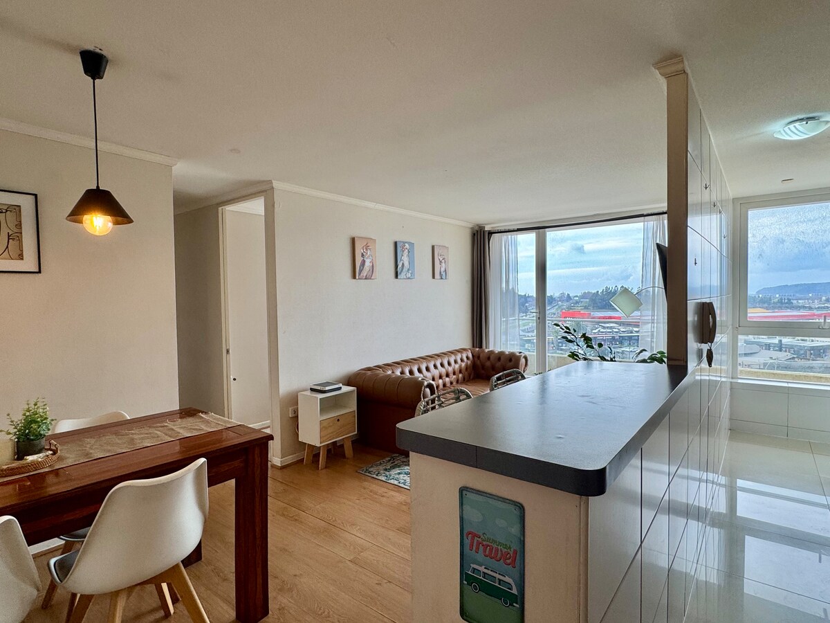 Mirno stanovanje v središču mesta. Blizu restavracij, barov, univerz in supermarketov. Ima dnevno sobo, jedilnico in popolnoma opremljeno kuhinjo. Glavna spalnica z zakonsko posteljo, omaro, zasebno kopalnico in teraso. Nahaja se 4 ulice od U. del Bio Bio, 3 ulice od avtobusnega terminala Collao, prevoz do vrat, ki vas odpelje v središče mesta. Bazen je na voljo glede na razpoložljivost. Ob četrtkih je bazen zaprt zaradi vzdrževanja.