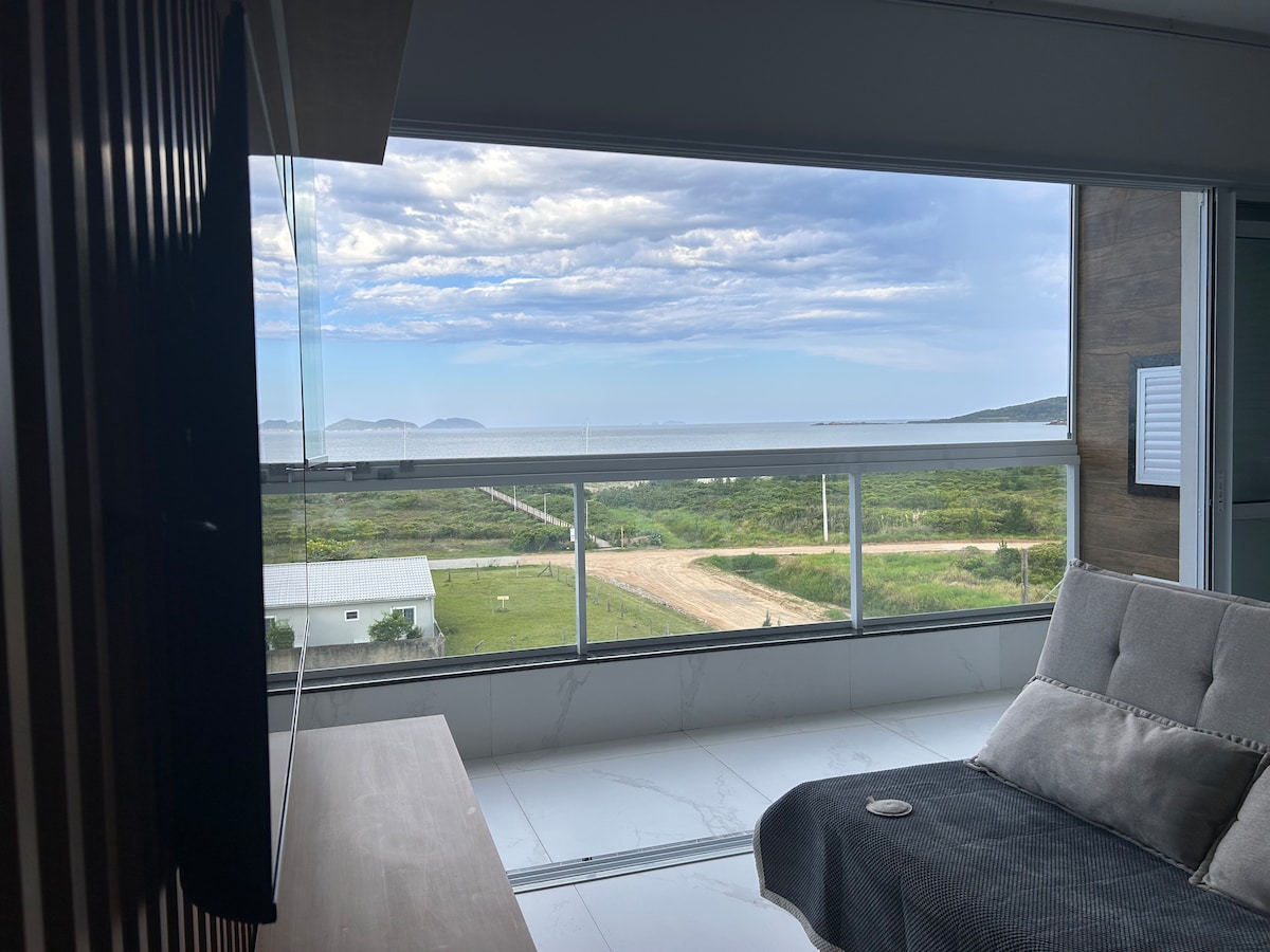 Stanovanje se nahaja na mirni plaži Pinheira 700 m od plaže Baixo, 2 km od plaže Cima in 2,5 km od plaže Guarda do Embaú. Sprejme največ 2 odrasla in 1 otroka; vključuje kompletno kuhinjo s štedilnikom, električno pečico, mikrovalovno pečico, opekačem, hladilnikom, aparatom za kavo in mešalnikom. Dnevna soba z raztegljivim kavčem in televizorjem. Spalnica z zakonsko posteljo, omaro, velikim ogledalom in ventilatorjem. Kopalnica z masažno kadjo in električno prho. Poleg prostornega balkona.