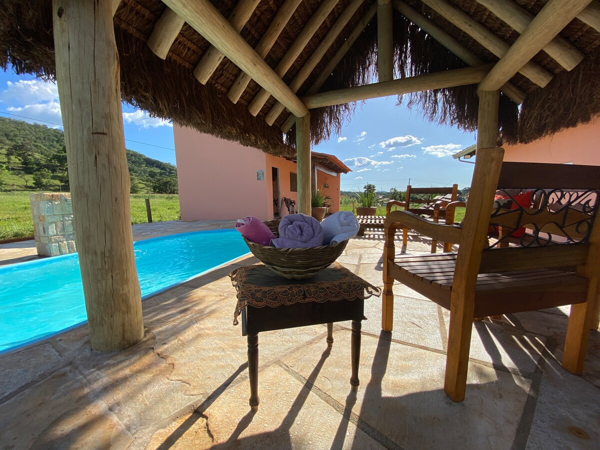 Odličen kraj za tiste, ki iščejo mir in tišino, saj se nahajamo le 6 km(samo 200 mts makadamska cesta) od zgodovinskega središča Pirenópolisa. - Hiša z dvema apartmajema - klimatska naprava - Wi-Fi sobe - Popolna gurmanska kuhinja - prostor za rekreacijo ( nogomet/odbojka ) - Solarni ogrevalni bazen - prostor za kamin - TV (spalnice/prostor za prosti čas) - viseče mreže za počitek - Najemite z veliko prostora in zasebnosti Lokacija omogoča pohodništvo sredi narave - Sprejemamo hišne ljubljenčke - igre