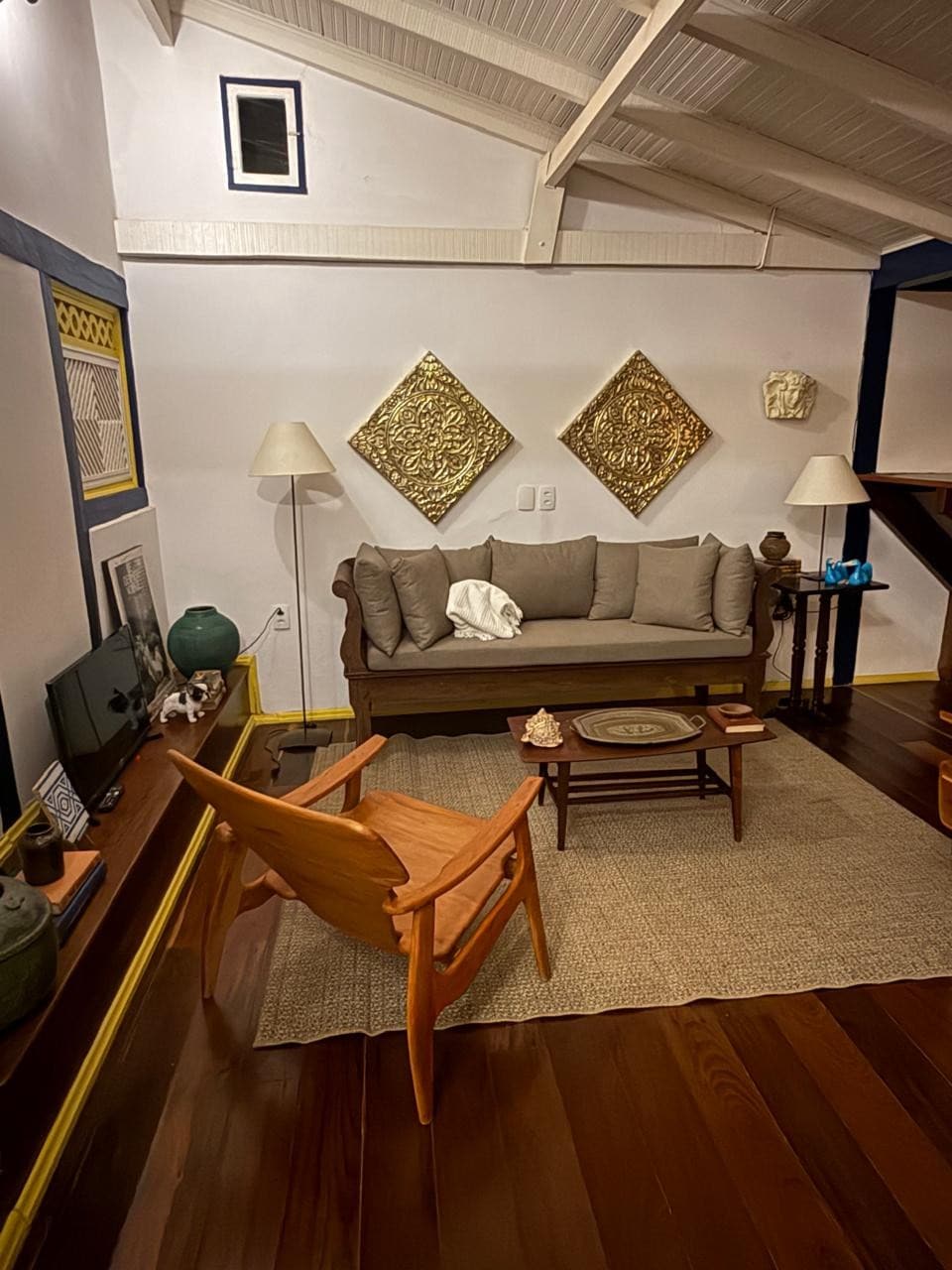 Apartamento cercado de arte a 300m da Igreja Matriz com: Suíte com ar condicionado cozinha integrada a sala de jantar, wi-fi e smart tv A mãe da anfitriã era artista plástica Ideal para até 2 pessoas, roupas de cama e toalhas de banho são fornecidas Estamos a menos de 5 minutos da famosa Rua do Lazer Algumas distâncias: 300m Centro da Cidade e Igreja da Matriz 1,2km Ponte do Carmo e Rio das Almas Não há estacionamento, mas é possível estacionar grátis em frente ao prédio.