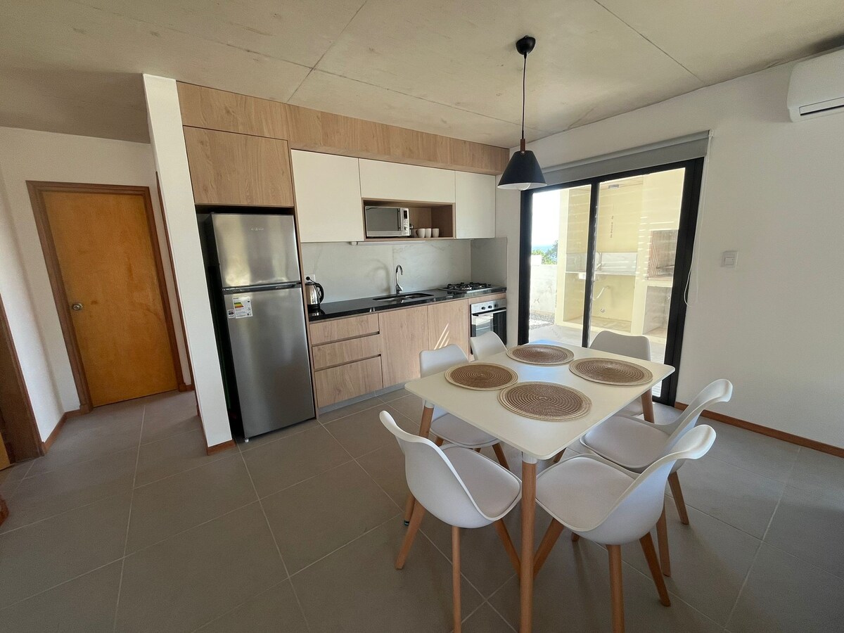 Zelo lepo stanovanje v veliki stavbi, ki se nahaja v osrčju Piriapolisa pred morjem poleg hotela Argentino , s spektakularnim razgledom. Za 3 osebe; 1 postelja za 2 osebi v spalnici in 1 postelja za 1 osebo v drugi spalnici. Prostorna dnevna soba in panoramski balkon s pogledom na morje . A///in ogrevanje. Ravna televizija in stereo oprema. Mobilni zdravstveni primer z brezplačno zaščito najemodajalcev in gostov.