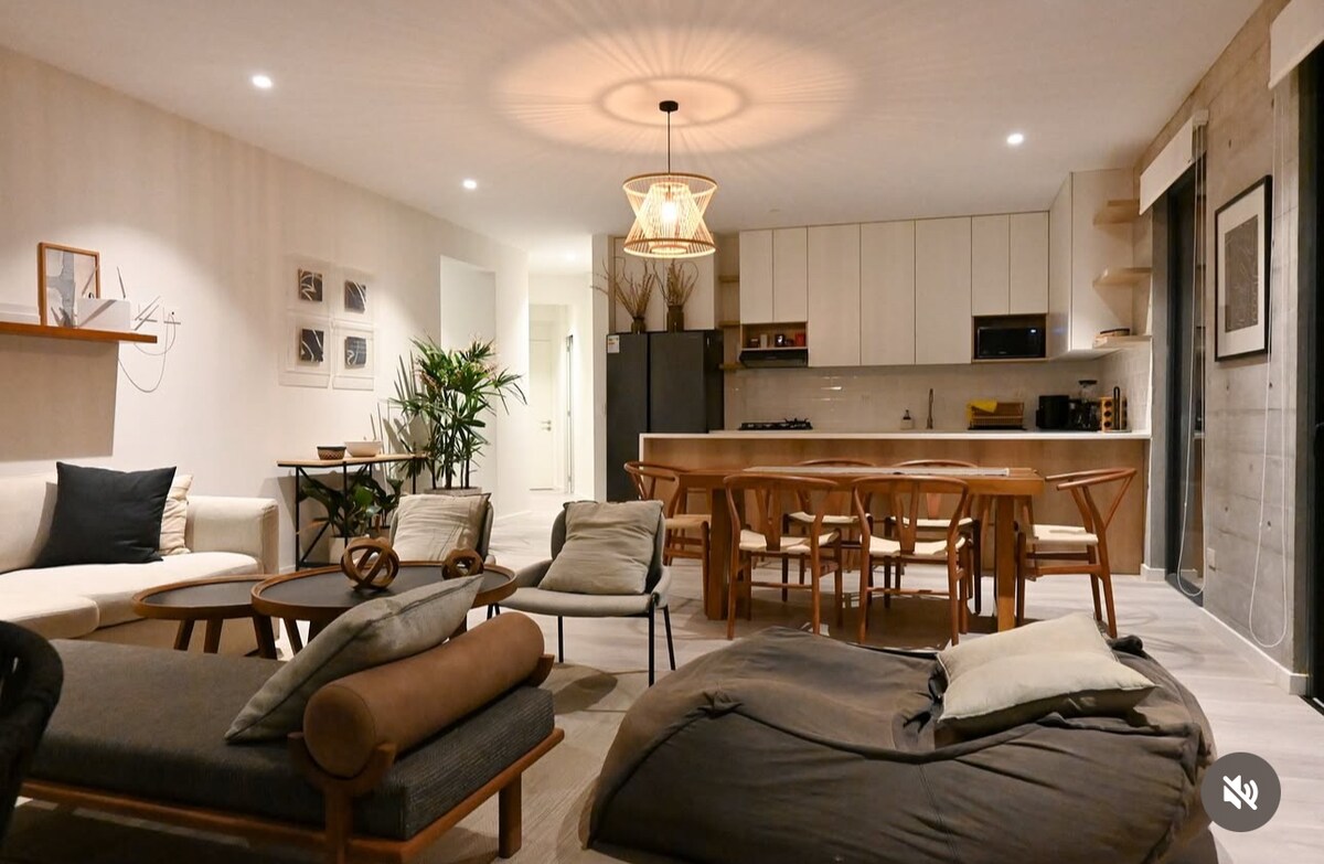 Perfecto para parejas o viajeros que desean una experiencia de lujo y tranquilidad. Disfruta de dormitorio principal con cama King, baño privado, aire acondicionado, persianas opacas y TV inteligente. Piscina privada, perfectos para relajarte bajo el sol con total privacidad. Cocina completamente equipada, sala y comedor con decoración contemporánea. Terraza con Kamado premium, para disfrutar de cenas al aire libre. Vistas panorámicas desde un exclusivo espacio en el condominio.