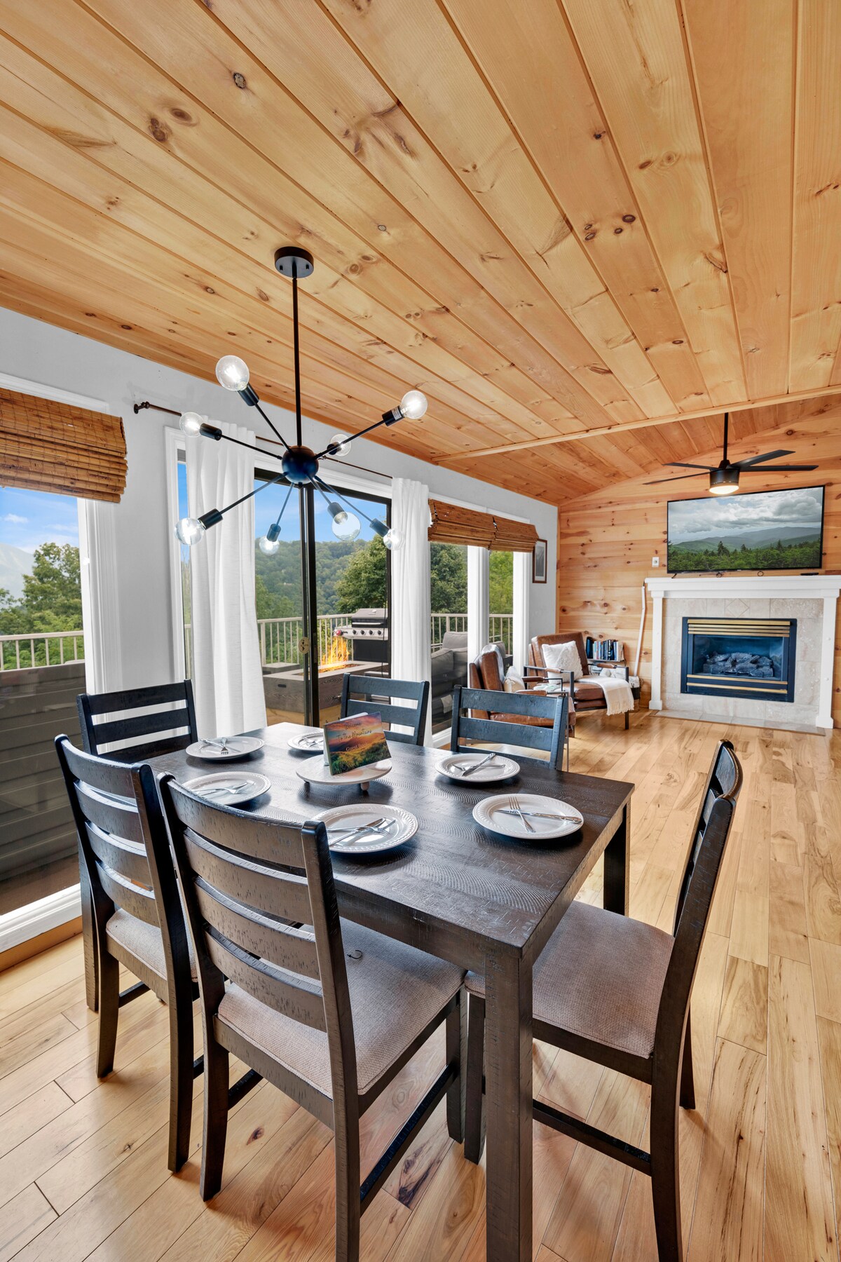 Doživite neprimerljivo razkošje v sodobnem čudu »Windows to the Mountains« v Gatlinburgu z osupljivim razgledom na goro Leconte. Koča ima strešno teraso z majhnim bazenom, kinodvorano in izvrstnimi zunanjimi ugodnostmi. Uživajte v popolnoma opremljeni kuhinji, udobni dnevni sobi s parnim kaminom in glavni suiti s kopalnico, podobno spa. Prenočišče »Windows to the Mountains« je ekskluzivno zatočišče za zahtevne goste, ki iščejo razkošen oddih. V njem vas čakajo kavarna, igralne mize in savna.