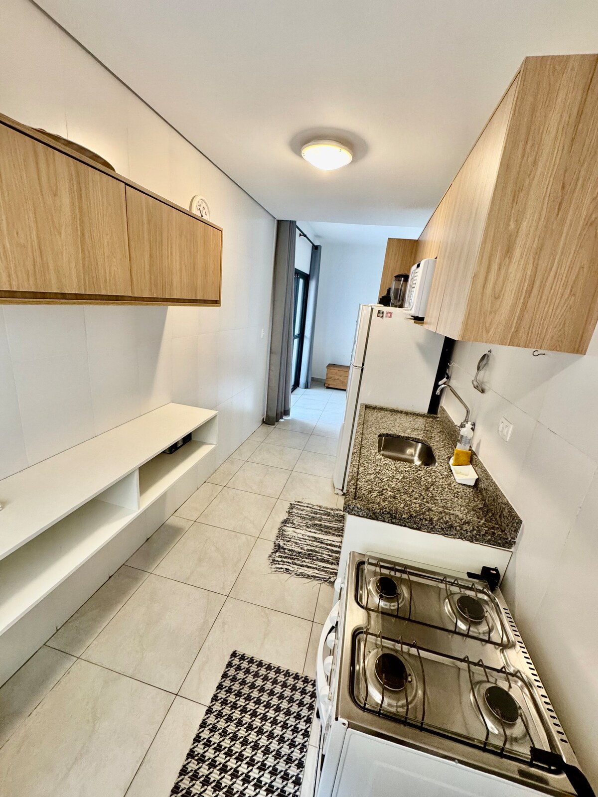 Apartamento mobiliado, apenas 230 metros da praia, menos de 3 minutos a pé. Roupa de cama, toalhas, ar condicionado, TV a cabo, wi-fi, cofre digital, secador de cabelo. Acomoda confortavelmente 4 pessoas, com uma cama de casal no quarto e um sofá cama na sala. Para maior conforto, o Flat conta com recepção 24 horas facilitando o check-in ou check-out, excelente café da manhã (pago a parte), piscina, academia e limpeza diária, exceto domingos e feriados.