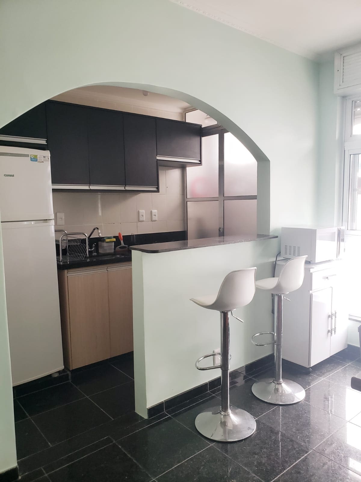 O Studio é localizado no centro do Guarujá, a 45 metros da praia de Pitangueiras. Possui apenas 42 metros quadrados, porém é muito aconchegante. O Studio possui cama box casal, sofá cama para 2 pessoas, SmartTV e Wifi fibra óptica. A cozinha é equipada com utensílios básicos, geladeira, fogão, microondas, cafeteira e sanduicheira. Banheiro espaçoso com chuveiro elétrico. Há AR condicionado e Fechadura eletrônica para maior conforto e segurança. O edifício possui portaria 24h e 2 elevadores.