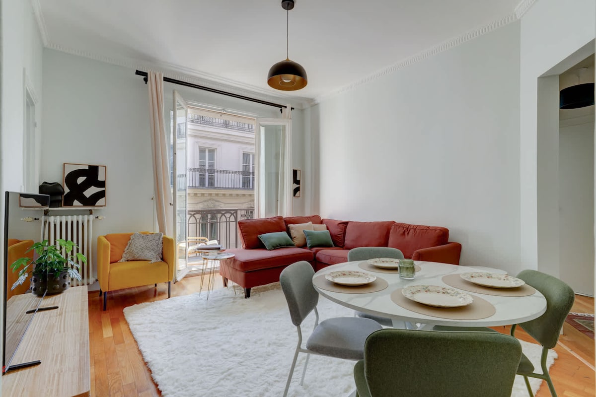 Appartement climatisée de 60 m2 à l’agencement haut de gamme dans l’hyper centre de Paris quartier historique de Montorgueil, célèbre pour ses commerces de bouches, ses petits bistrots et restos. L’appartement se situe au 1 er étage d’un immeuble dans une rue très calme. Il a été refait à neuf en 2023 par une célèbre architecte et donc très bien agencé avec des équipements de très haut standing. Vous y serez comme dans une suite d’hôtel avec le charme en plus, d’un vrai logement parisien.