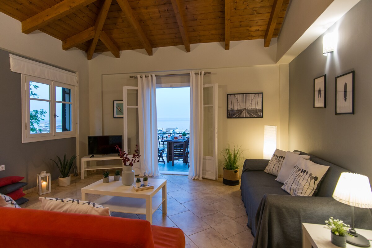 “La bella vista” is located in a quiet neighborhood of Zakynthos town on the hill. It's just 5 minutes on foot from the main road and shopping areas, the cafes and the sights. Easy access on foot to the port and the bus station from where you can visit the rest of the island! Walking up the paved road you reach the castle and the picturesque Bohali . It overlooks the town of Zakynthos, and the Ionian Sea. The wonderful view and the tranquility of the area will make your holidays unforgettable.