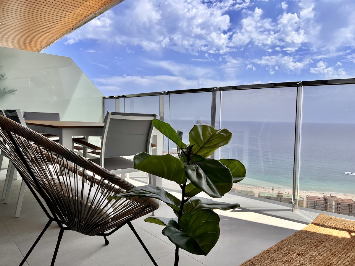 Luksuzno stanovanje v Benidormu z veliko teraso s pogledom na plažo Poniente Vabimo vas, da najamete novo 100 m² veliko stanovanje, ki se nahaja v 30. nadstropju razkošnega 37-nadstropnega na novo zgrajenega nebotičnika v osrčju Benidorma. To elegantno stanovanje je kot nalašč za sprostitev in počitek v najvišjem standardu. Namestitev je od čudovite, peščene, javne plaže Poniente oddaljena le 5 minut hoje, kar omogoča hiter in enostaven dostop do morja.