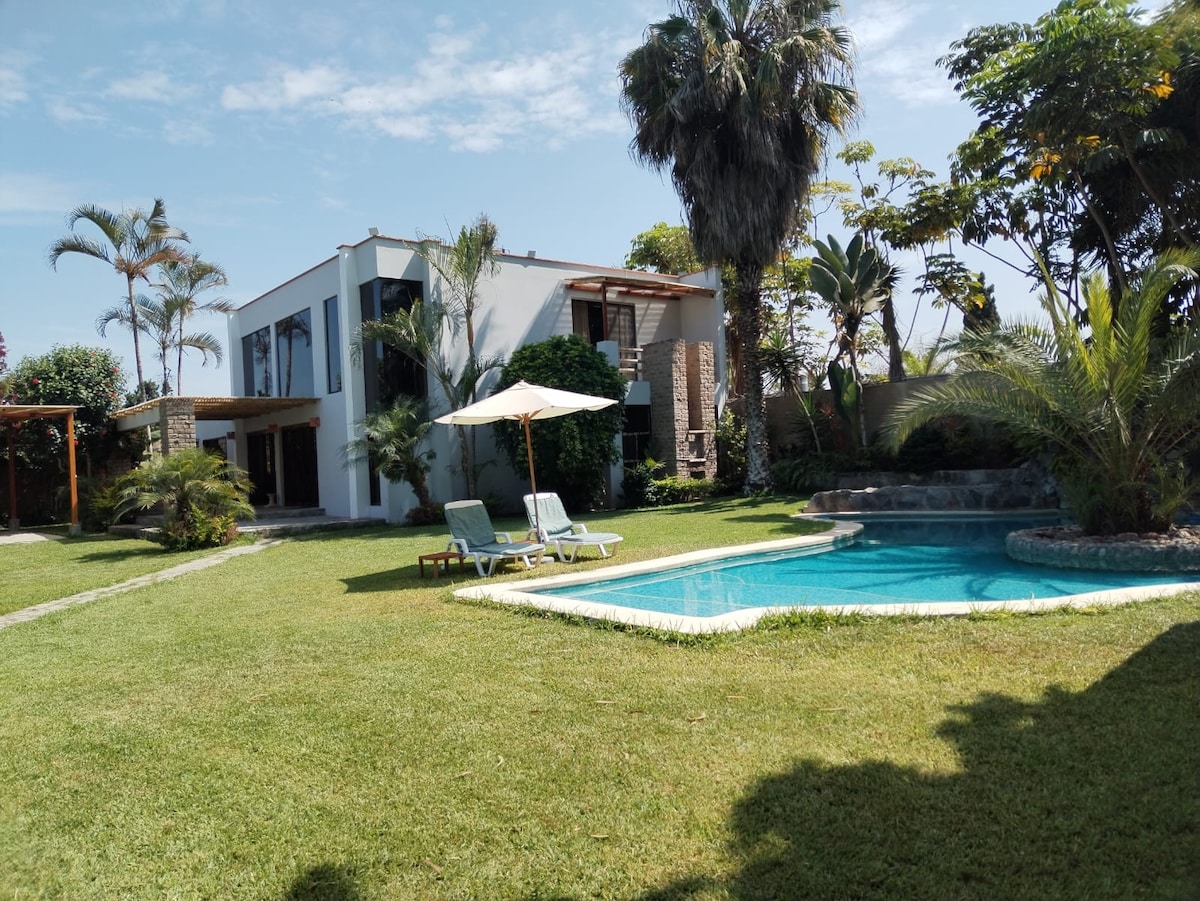 Escápate al sur y disfruta de una casa de campo privada con piscina y amplios jardines 🌴☀️. Vive días de descanso en un entorno natural, con zona BBQ, horno de barro y fogata bajo las estrellas. 🌸✨ A pocos minutos de las playas de Asia y Chocaya, markets, panaderías artesanales y establos con productos naturales 🥖🐮. Ideal para familias y grupos que buscan descanso, naturaleza y comodidad. 🏡💛