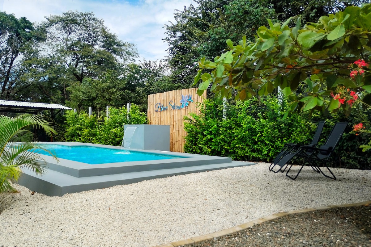Na novo prenovljeno. Bivajte v čudoviti vili z zasebnim neskončnim bazenom, ki se nahaja v varni skupnosti, v bližini najlepših plaž v Kostariki. V celoti prenovljen leta 2025, ponuja sodobno udobje in osupljiv razgled. • 2 klimatizirani spalnici z zasebnimi kopalnicami • Odprite prostor s polno kuhinjo in udobno dnevno sobo • Zunanja jedilnica za spektakularen sončni zahod • Wi-Fi, detektor in ograjeno parkirišče