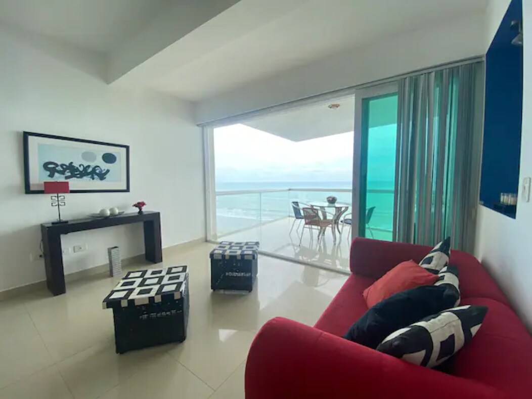 ✅ !Super anfitrión confirmado!🏆 😊!Llegaste al lugar perfecto! 🤩Vive unas vacaciones de lujo y comodidad. 🌊Vista espectacular al mar piso12 🛜 wifi & TV 💫GRATIS brazaletes 5 🏊Piscinas adultos y niños 🐶pet friendly 🌟 El apartamento cuenta con: 🛌3 habitaciones 🚾2 baños completos con agua caliente ❄️ AC 🛁Jacuzzi 🥘Cocina totalmente equipada 🍽️Comedor 🏖️Sillas de playa 🧖♂️Sauna 🏋️ Gimnasio 🚙1 parking 👮♂️ Seguridad 24/7 horas