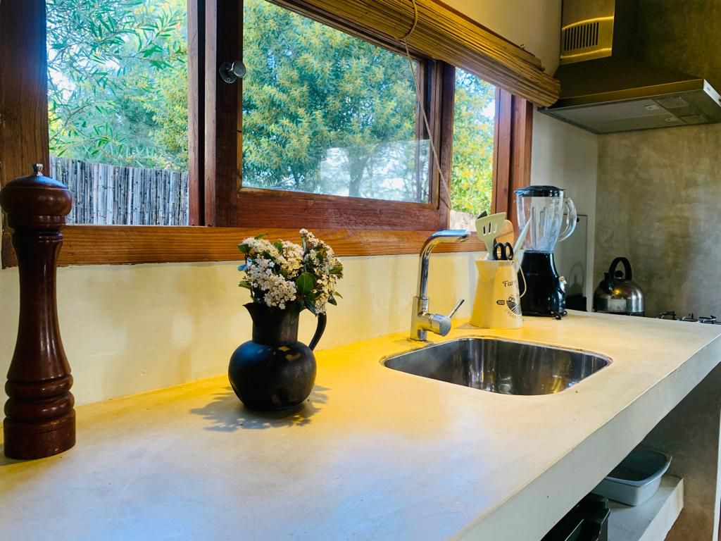 Bright designer cabin with stunning views of Playa de la Viuda. Perfectly located steps from the beach and very close to the town center. Features AC, a high-efficiency wood stove, full kitchen, and Wi-Fi. Part of a boutique complex of three independent units; each with its own private BBQ and on-site parking, ensuring security and a peaceful stay. Follow us on social media: Casitas Punta del Diablo. We look forward to hosting you!
