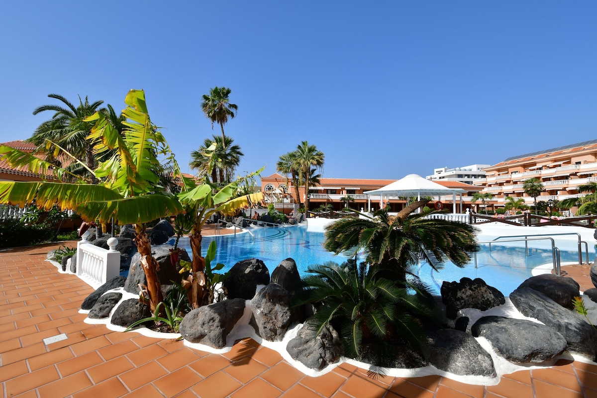 Nahaja se v turističnem središču Las Americas, ki se nahaja 100 metrov od najlepših plaž na otoku in najboljših nakupovalnih ulic Tenerife. Brezplačno parkiranje, 24-urna recepcija, 2 bazena in 2 teniški igrišči. Stanovanje je opremljeno s klimatsko napravo, pametnim televizorjem 65-palčniku WI-FI Bluetooth, mikrovalovno pečico, sušilcem za lase, pralnim strojem in zakonsko posteljo z vzmetnico in zgornjim delom. Na voljo za izposojo teniških loparjev. Za vašo varnostno zaščito Verisure.