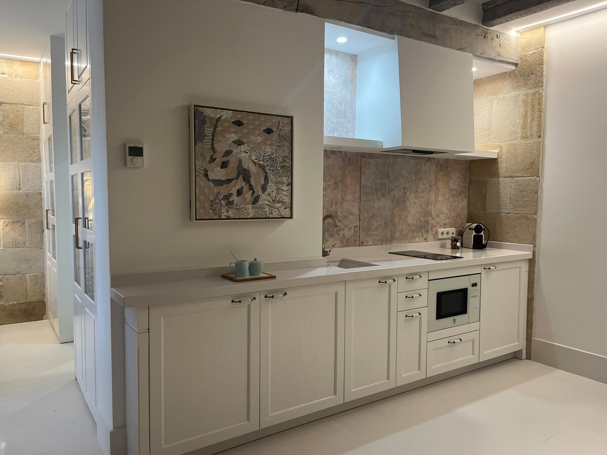 75 m2 uporabne hiše, razporejene v treh nadstropjih in ima neodvisno kuhinjo, razdelilno-jedilnico, dnevno sobo s kaminom in dve spalnici z vgrajeno kopalnico. To je popolnoma prenovljena stara stavba, opremljena s keramičnim štedilnikom, pečico, mikrovalovno pečico, pralnim strojem, pomivalnim strojem, hladilnikom, majhnimi napravami, posodo in posteljnino ter kopalnico. Ima zaprto teraso z dostopom iz kuhinje za sprostitev ali uživanje zunaj in balkon čez ulico.