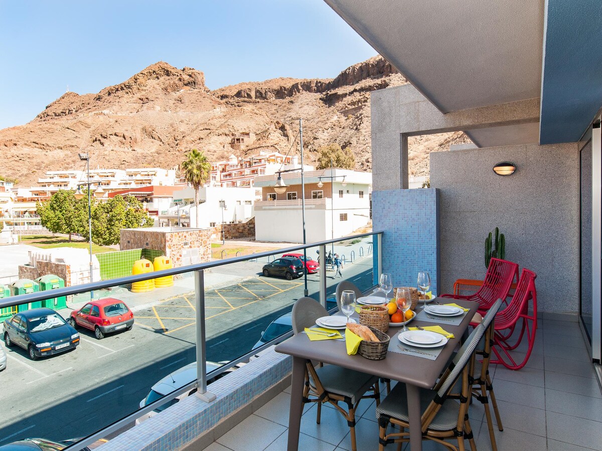 Svetlo in dobro opremljeno dvosobno stanovanje z dnevno sobo, kopalnico, kuhinjo in sončnim balkonom za uživanje v zajtrku, ki se nahaja le 100 metrov od peščene plaže Mogán in je obdano z množico restavracij in trgovin. Stanovanje ima skupni solarij s prho in visečimi mrežami na strehi.